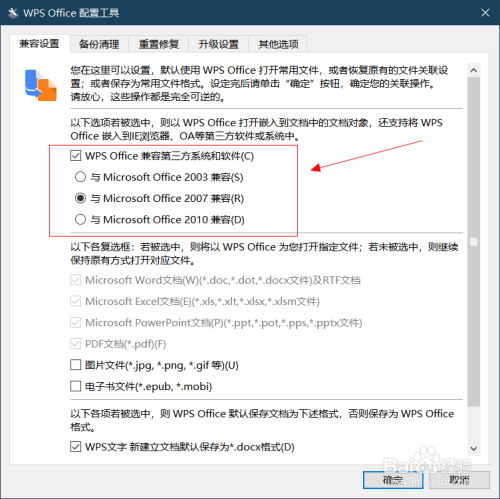 在“兼容第三方系统和软件”选项前打勾,再选择自己想要的版本,点击确定即可。