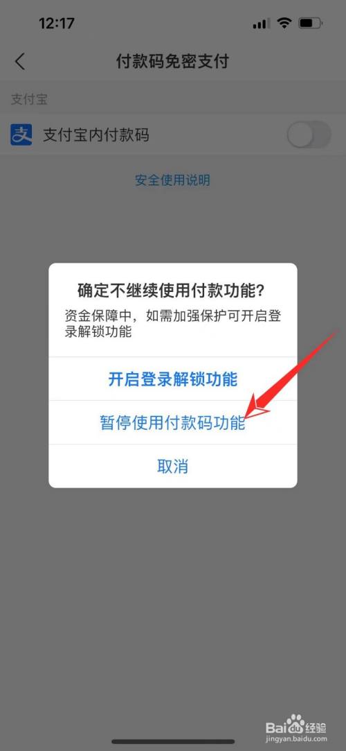 在弹出的提示框点击【暂停使用付款码功能】就可以将付款码免密支付功能关闭了。