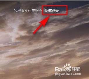 2、查看右上角有一个快速登录,点一下,然后登录进去。或者用手机支付宝进行扫描登录都可以。