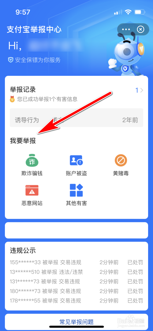 输入举报对象的支付宝账号,填写举报内容后,点击“同意举报须知并提交”的按钮即可举报有害信息。