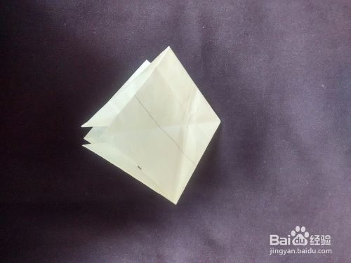 将多层的一面向上。将上面的角折下来。再将中间的两个角折下来。再将上面的两个角折回去。再将中间的层捏住往外拉。然后,压平。