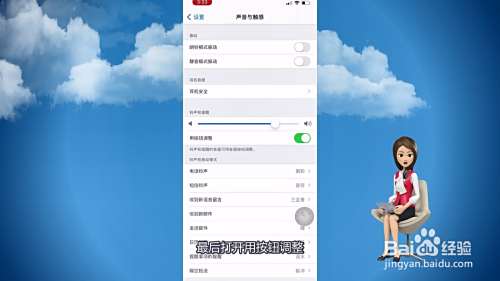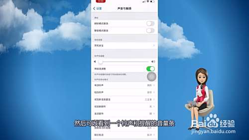 5、最后打开用按钮调整,即可按上音量键调大手机声音。