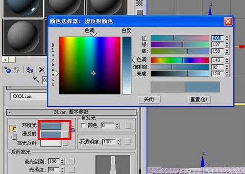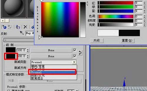 9在衰减面版调节颜色,衰减选项为Fresnel。
