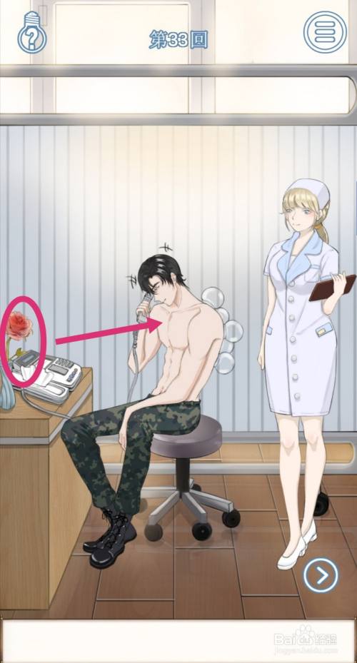 游戏男主把电话扣在纸巾盒上后,就会送花勾搭护士。