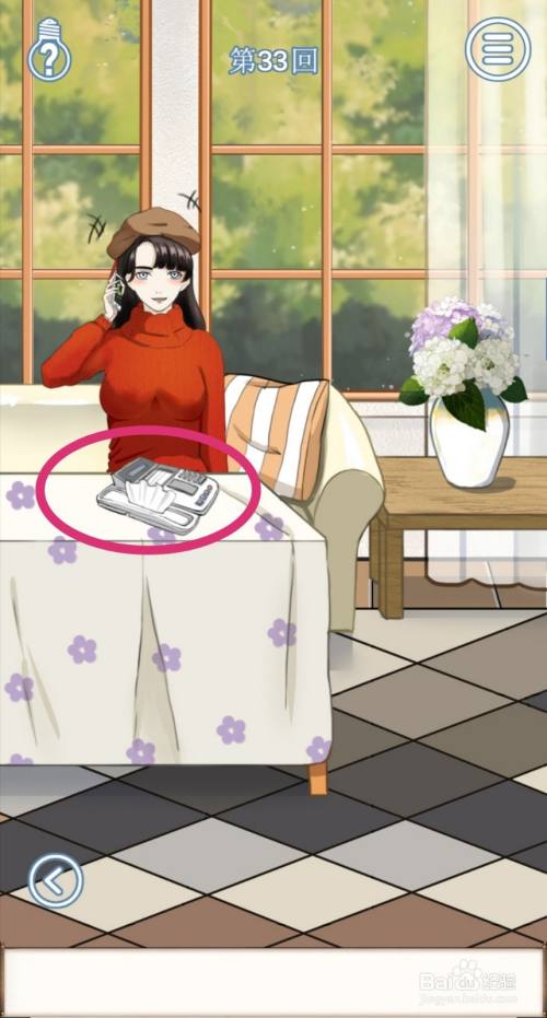 首先,进入右侧场景,点击获得【电话外形的纸巾盒】。
