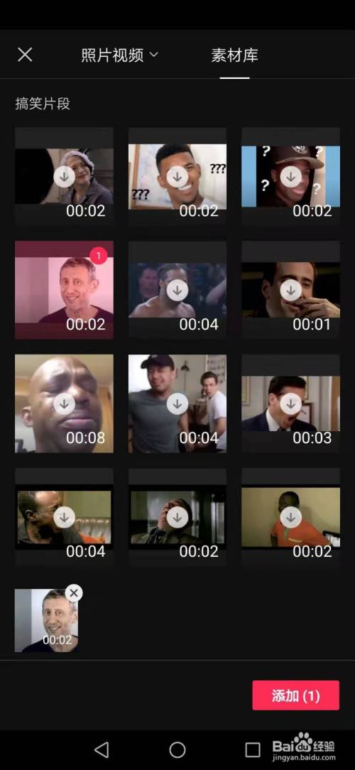 选择好你需要的素材,点击选择,点击下方的添加即可添加,如下图所示。