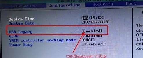 二:进入BIOS界面后,要检查USB是否处于“Enabled”打开状态,tips:如果关闭请打开。