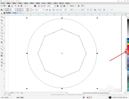 最后,选中图案,点击右边色板中想要的颜色进行填充,这样我们的镂空八边形圆形图案就制作完成了。