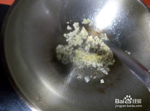 锅里留少许油中火烧至7成热,放入姜蒜,炒出香味