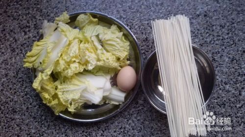 准备好面条、鸡蛋、白菜。白菜洗净切好待用。