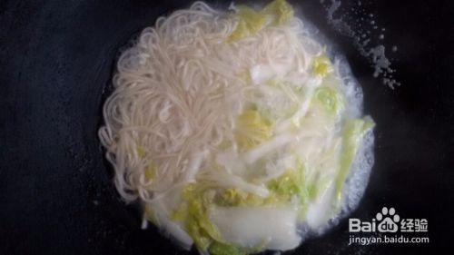 等白菜过青后放入面条,再煮几分钟,面条熟了就可以关火了。