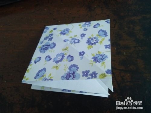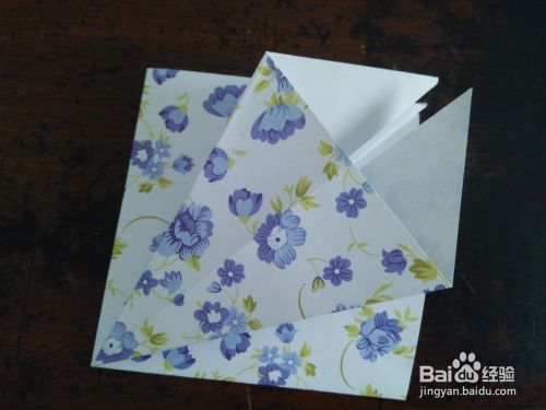 所有的边都折好后,我们按照折痕把角向着右侧折倒,所有的角都按照一个方向折,如图四。