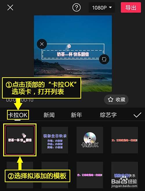 添加模板。点击顶部的“卡拉OK”选项卡,打开列表,选择拟添加的模板。