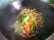 4翻炒至熟软,加适量酱油,加适量清水焖熟。