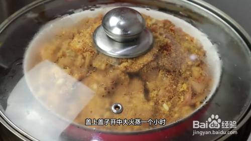 五花肉切片,生姜和蒜切沫,加入调料腌制,倒入蒸肉粉,搅拌均匀,土豆切块,洗净放入碗底,五花肉放入土豆表面,锅中烧水,水开后放五花肉,盖上盖子开中大火蒸一个小时,撒上葱花即可食用。