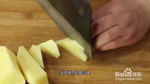 土豆改刀切成小块,洗净去除淀粉放入碗底,将腌制好的的五花肉放入土豆表面。