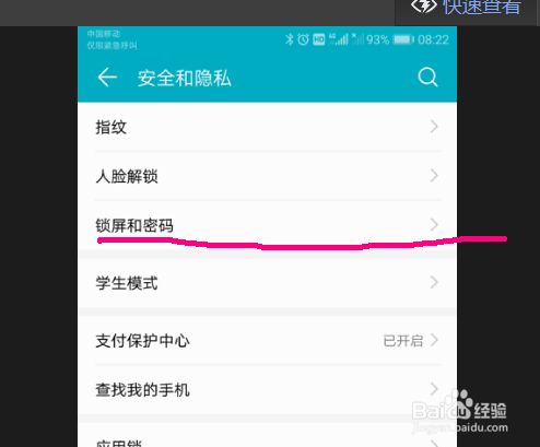 【安全和隐私】界面中找到【锁屏和密码】