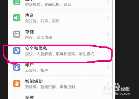在弹出的界面中找到【安全和隐私】