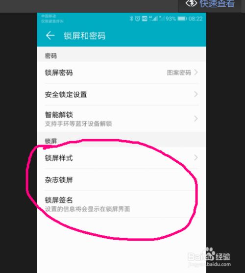 进入【锁屏和密码】后,下部为锁屏设置区域。