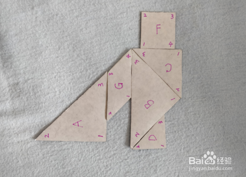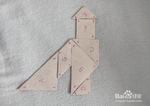 为了方便叙述,对每个形状用字母进行标注,每个形状的顶点用数字进行标注。具体标注如图。