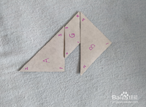先把形状A放在桌面平台上,2在左,3、1在右,如图。
