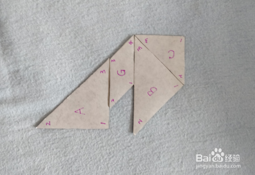 把C放在B的上面挨着,3在左,1、2在右,C的2、3分别挨着B的1、3,如图。