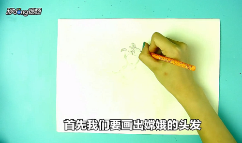 1首先画出嫦娥的头发和头发上的花朵。
