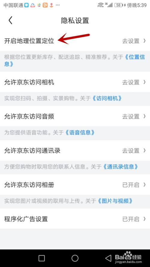 点击“开启地理位置定位”选项
