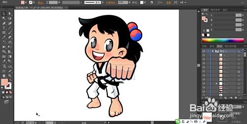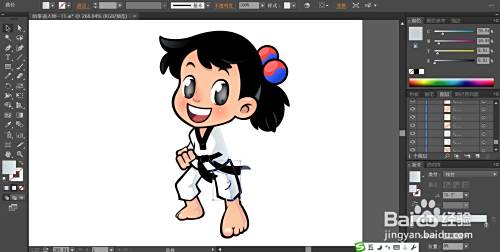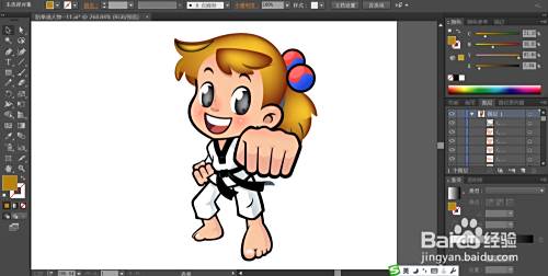 最后,我们还可以用红棕色填充女孩的头发再用网格工具做出金黄色的渐变效果,完成跆拳道女孩形象设计。