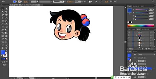 接着,我们用网格工具给女孩的瞳孔做出灰黑色的渐变效果。再用黑色填充女孩的眉毛。