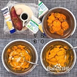 红薯去皮切块,上锅蒸30分钟至软糯(高压锅上汽后中火6分钟),压成薯泥,加入少量牛奶、炼乳,搅扮均匀。
