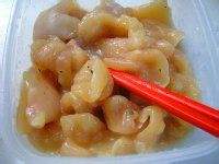 把腌制好的鸡块裹上适量的地瓜粉