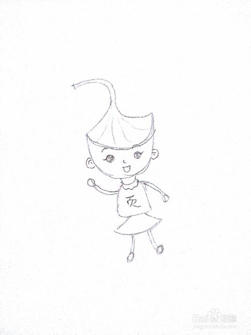 我给大家分享一个用银杏叶画成可爱女孩简笔画的经验。