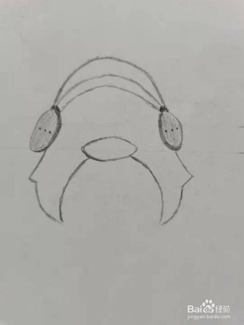 然后,我们沿着耳机画小企鹅的头部轮廓和身体。