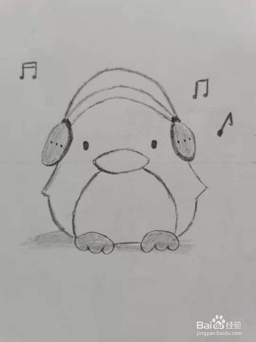 最后,画一些音乐符号做修饰,小企鹅简笔画,就完成了。