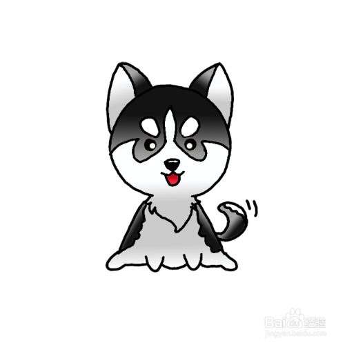 画哈士奇的身体和四肢。狗狗是坐在地板上的