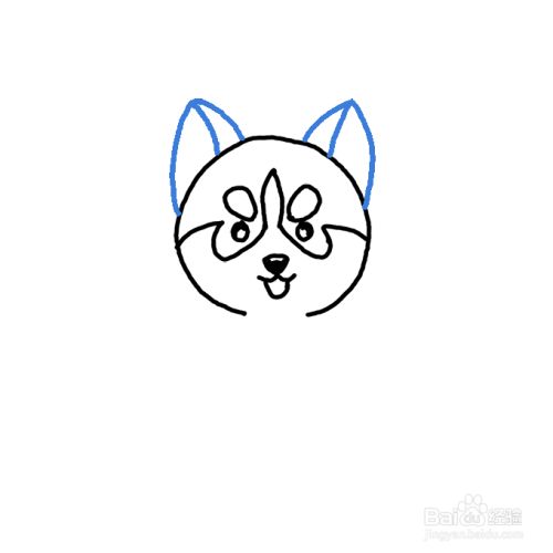 画一个圆形,底部不密封,这将形成哈士奇的脸