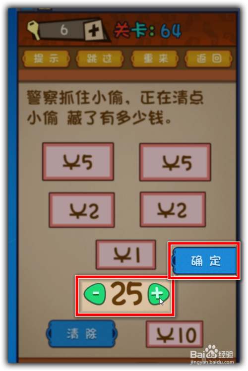 【第64关】警察抓住小偷,正在清点小偷藏了有多少钱。