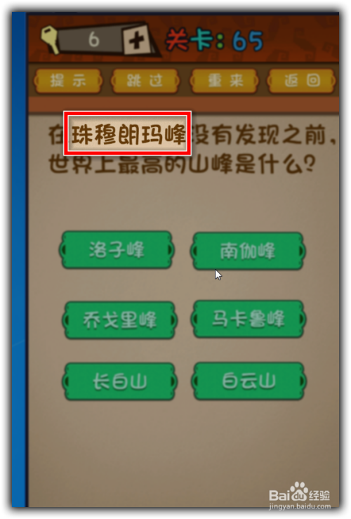 点击题目中‘’珠穆朗玛峰‘’,即可通关