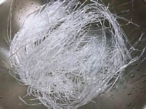 粉丝稍用水淋湿,对半剪或者剪成三段