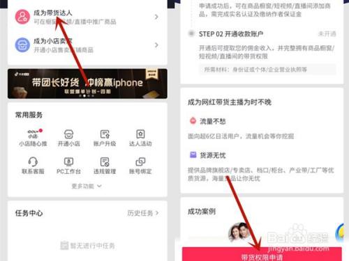 点击成为带货达人,满足基本要求,点击到货权限申请即可挂商品橱窗。