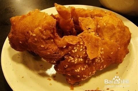 这款是长沙小伙伴们推荐的一款美食,这个油饼中间很空,外面如大家所看到的芝麻很多,吃起来很香,发甜的哦,口感软软的,皮薄不油腻。不过价格贵了点!哈哈。