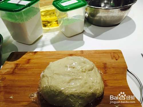将揉好的面团用保鲜膜包裹住进行第一次发酵,约二十分钟左右