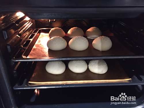 发酵好的面团放入烤箱,180度18到20分钟,表面金黄