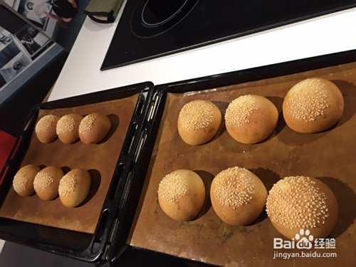 烤好的汉堡胚放到不烫手在汉堡胚从下往上三分之一处切割进行最后加工