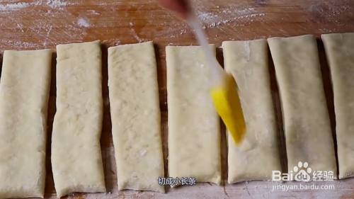 将长条下入六成热的油锅,不停的翻动它,直到炸成金黄色即可捞出。