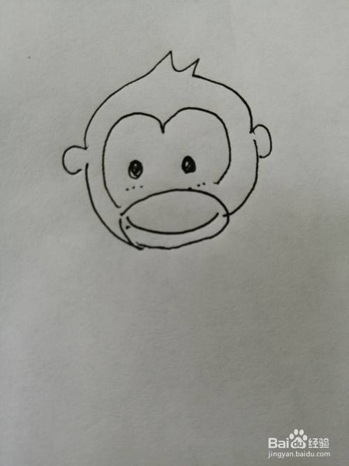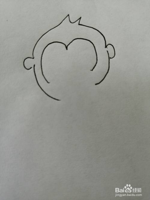 第一步,我们先画出可爱的小猴子的头,注意头两边小耳朵的画法。