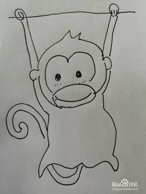 第七步,最后把可爱的小猴子的小尾巴画出来,可爱的小猴子就画好了。