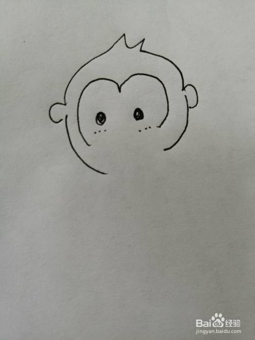 第二步,接着画出可爱的小猴子的脸上的纹路,注意两只大眼睛的画法。