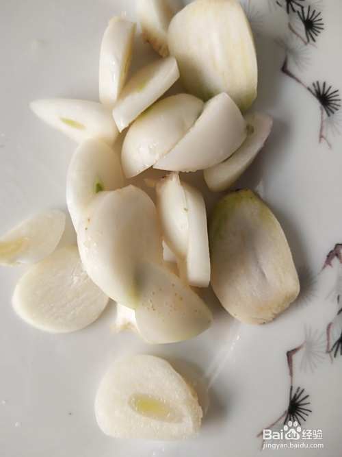 大蒜8克。剥好,洗净,切片儿待用。